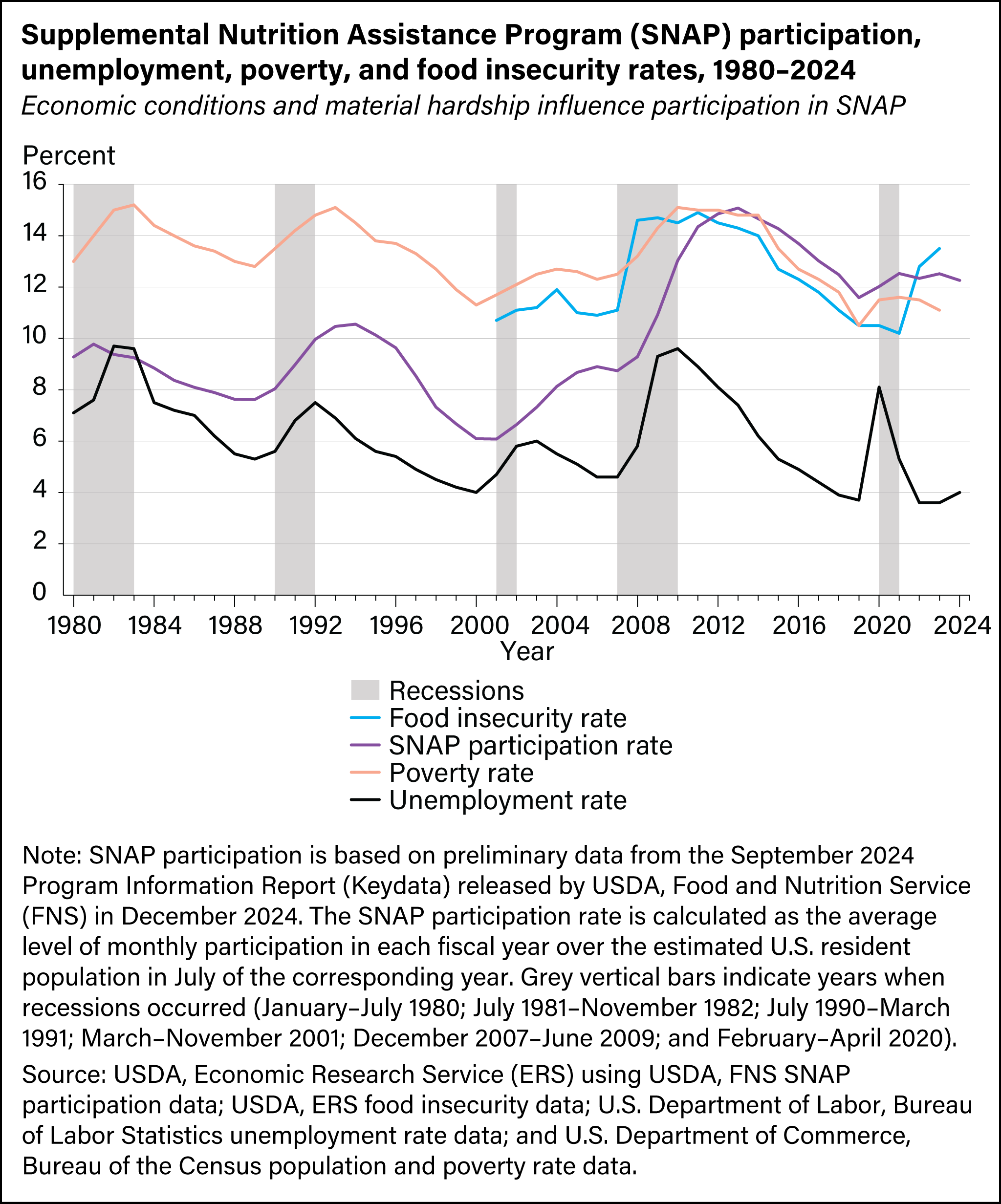 The claim that food insecurity has remained “virtually unchanged” ignores wide variations across states and counties and indeed, at times, substantial shifts in rates of food insecurity at the national level, particularly during economic recessions.